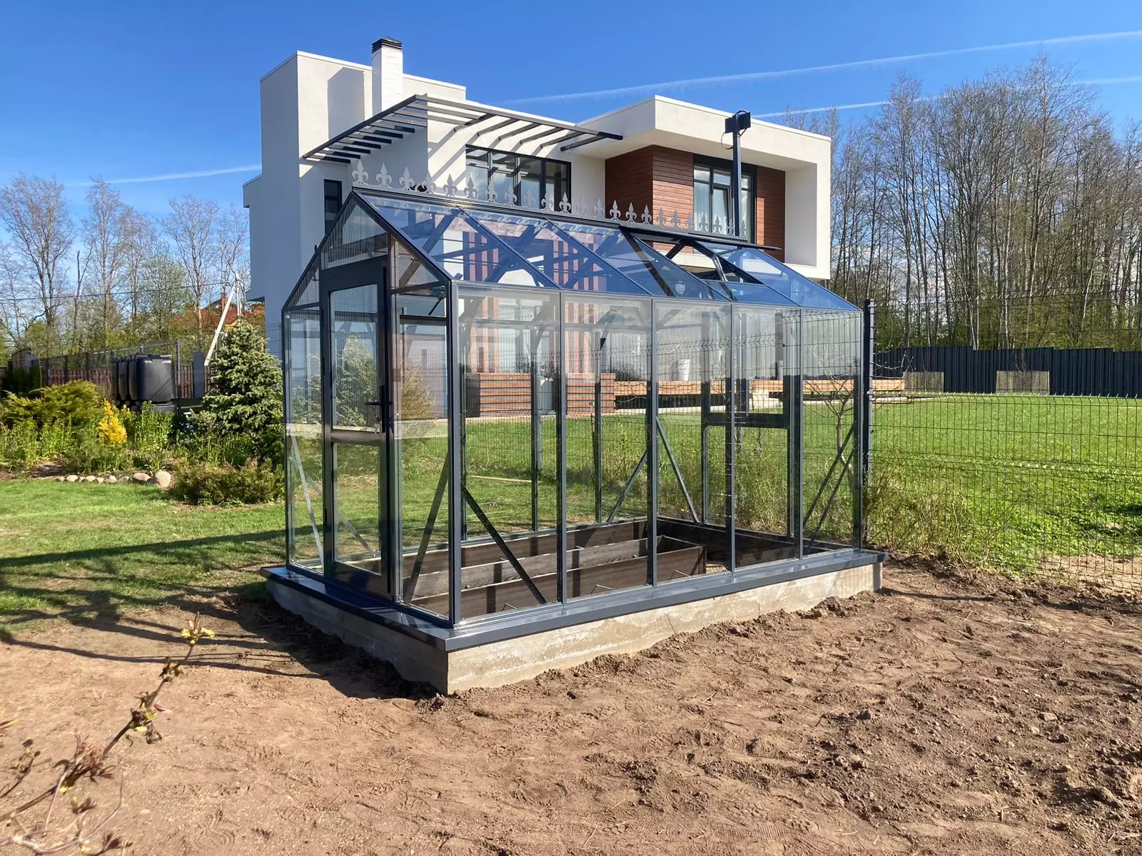 - Компактность и универсальность. Минимальная длина — 3,23 м, что делает теплицу подходящей даже для ограниченного пространства.