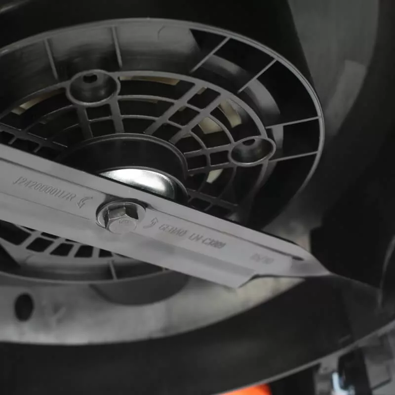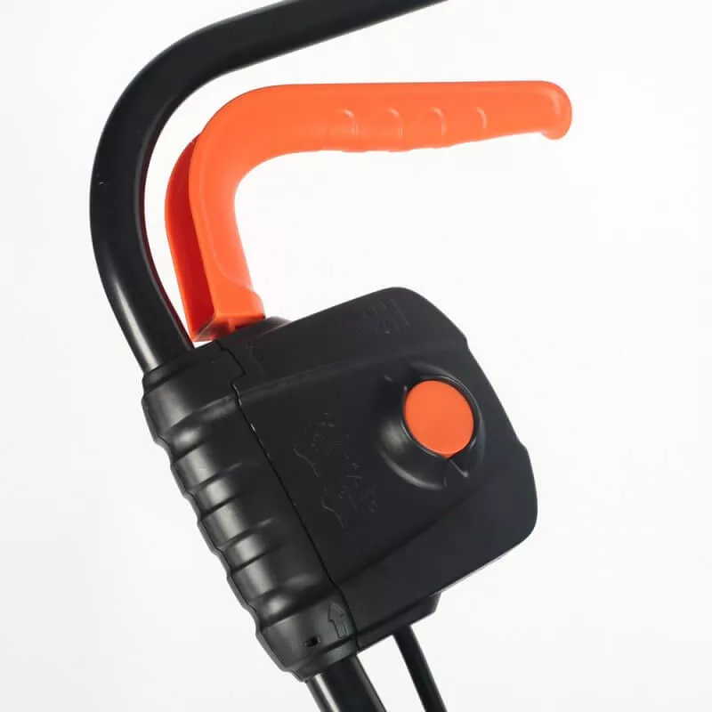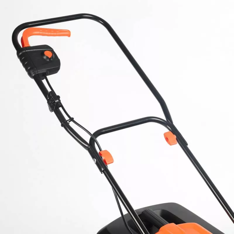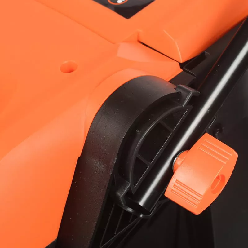 - Складная рукоятка, съёмный травосборник и компактный размер позволяют легко транспортировать и хранить газонокосилку.
