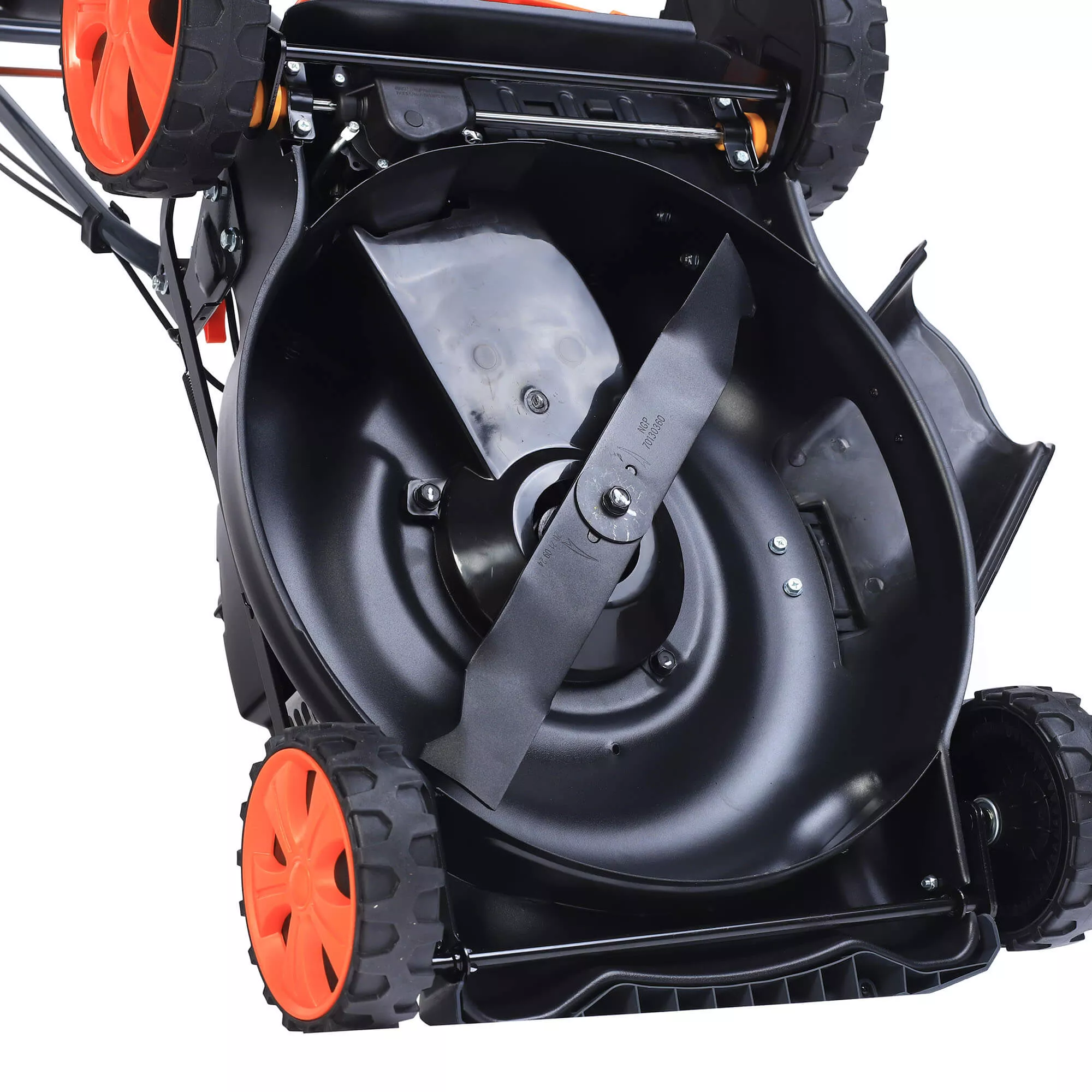 - Для облегчения работы газонокосилка оснащена приводом на колеса.