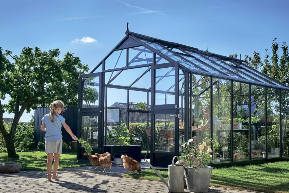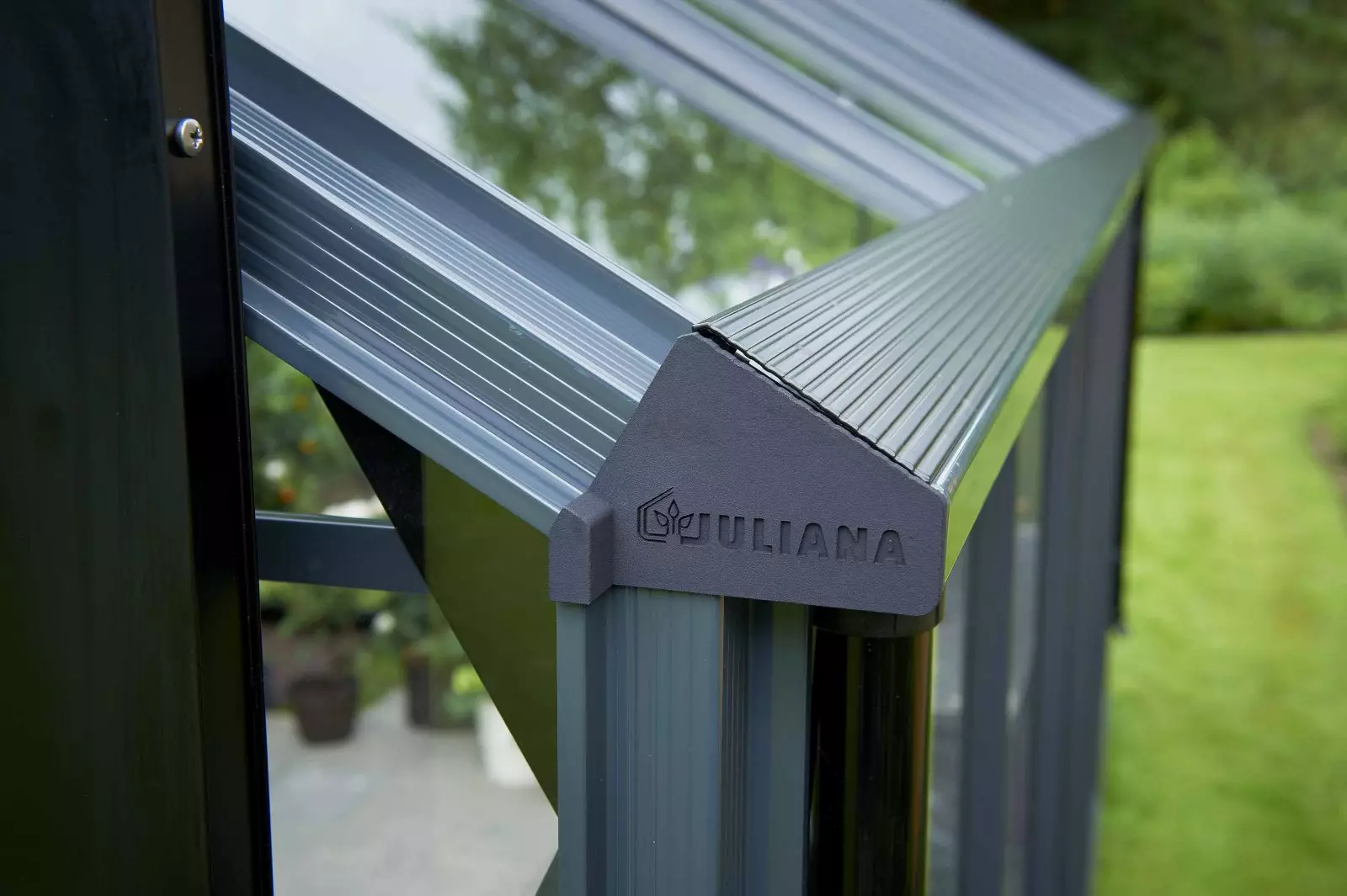 Фирменный профиль Juliana выполнен из усиленного алюминиевого сплава. В цвете антрацит используется порошковый окрас. Для остекления серии Premium используется 4 мм закаленное, безопасное стекло, легкое и прочное. Увеличенная высота стен 172 см. создает больше места для растений и людей.