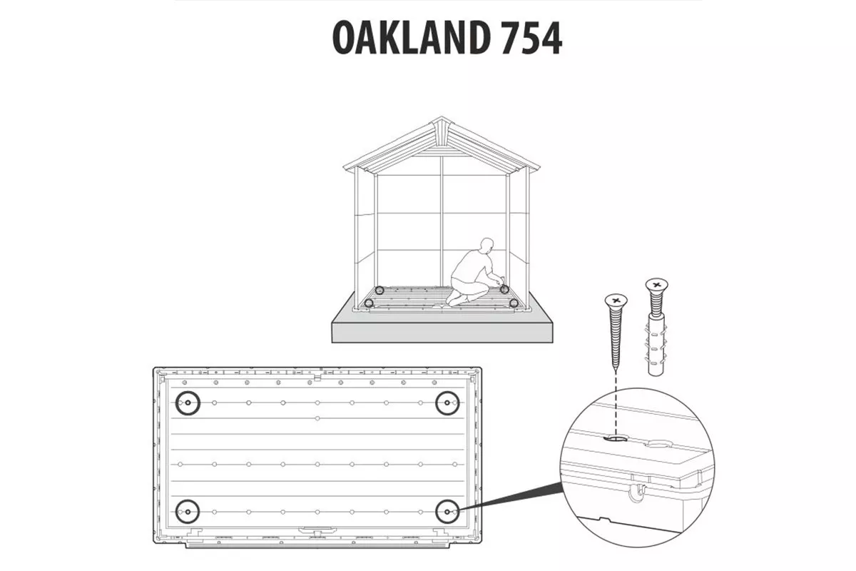 Малогабаритный пластиковый сарай Oakland 754 решает проблему хранения в ограниченном пространстве. Домик имеет прочную напольную панель и кронштейны для двух опционально устанавливаемых полок (не входят в комплект), а также замок на дверях в качестве дополнительной защиты. Oakland 754 идеально подходит для хранения вещей упорядоченным способом, если пространство, которым мы располагаем, невелико: на балконе, террасе и в маленьком саду.