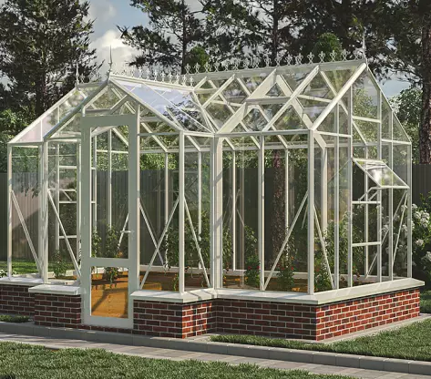 Каркас выполнен из алюминия и спроектирован с учётом ветровых и снеговых нагрузок. Конструкция остаётся жёсткой, а стеклянные панели, установленные через уплотнители защищают посадки от перепадов температуры.