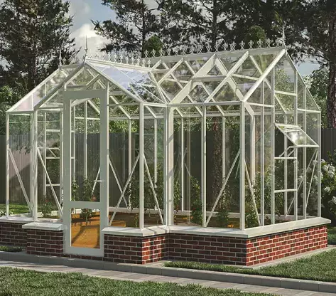 Эта теплица создана для тех, кто ценит гармонию формы и функциональность. Её выразительный силуэт в английском стиле придаст участку изысканный и современный вид, а качественное остекление и продуманная вентиляция обеспечат идеальные условия для выращивания растений.