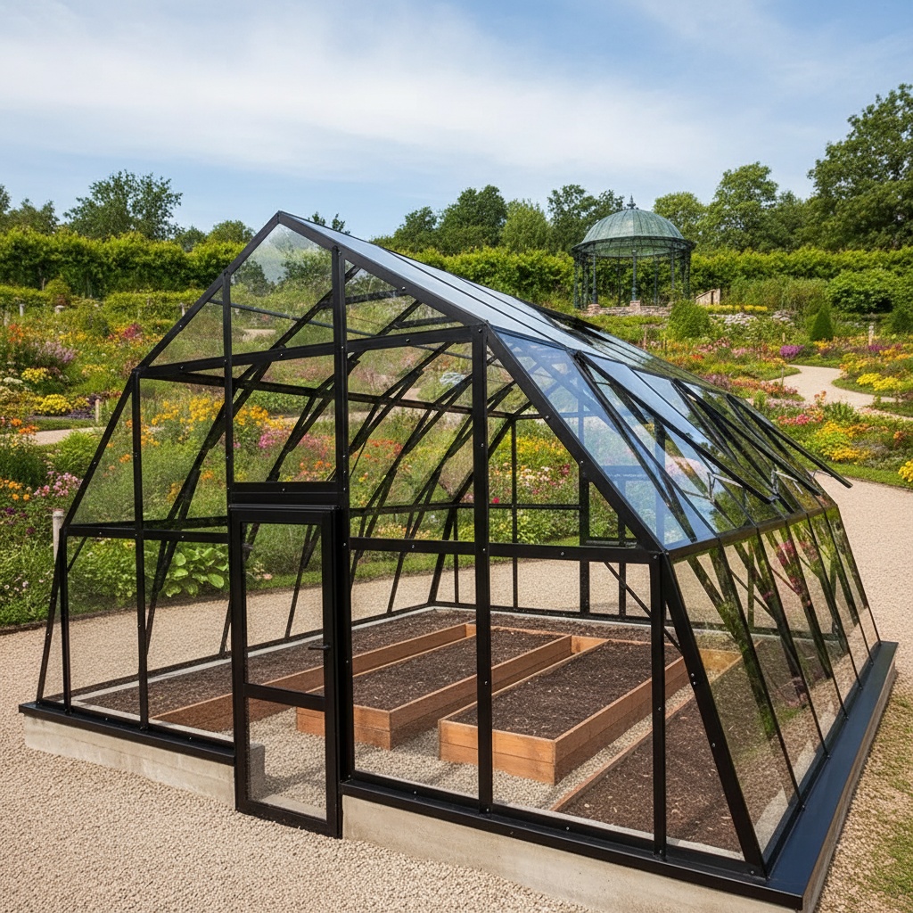 Современная теплица НЕМАН ориентирована на тех, кому требуется крупное остекленное пространство для сезонного выращивания, размещения большого количества растений и стеллажей. Конструкция имеет увеличенную ширину — 5 метров, что обеспечивает значительный внутренний объем и делает конструкцию сопоставимой по габаритам с полноценной оранжереей.