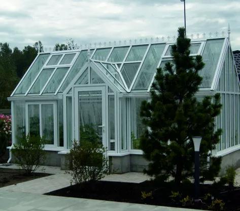 Каркас изготовлен из усиленного алюминиевого профиля сечением 50×80 мм, рассчитанного на сильные снеговые и ветровые нагрузки. Для покрытия применяется закалённое стекло толщиной 5 мм, отличающееся высокой светопроницаемостью, износостойкостью и безопасностью при эксплуатации. Герметичная система остекления, водостоки и отливы по периметру предотвращают попадание осадков внутрь и защищают фундамент от влаги.